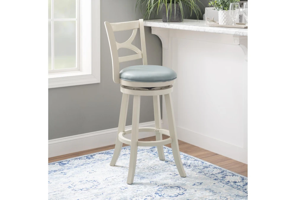 This elegant Alex Cream Swivel Barstool is the perfect addition to any casual dining room with its tall, swiveling design and high-quality wooden construction. Enjoy the comfort and style of this versatile barstool, perfect for any occasion.