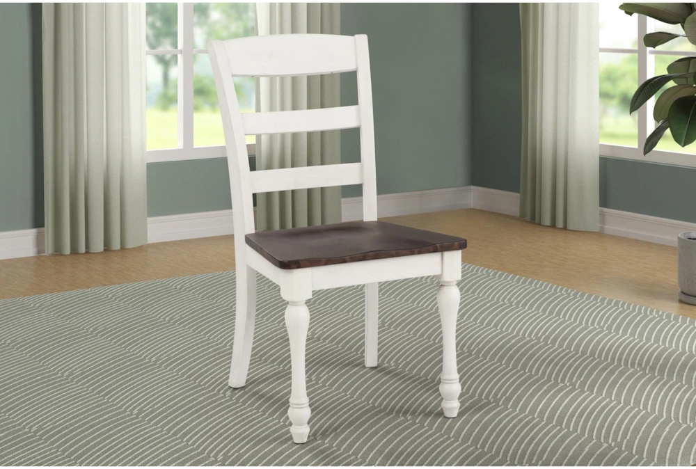 The Aurelia Dining Side Chair is a set of two farmhouse style chairs made of brown wood, perfect for your dining room. Assembly is required, and the chairs have solid wood seating with saddles for extra comfort.
