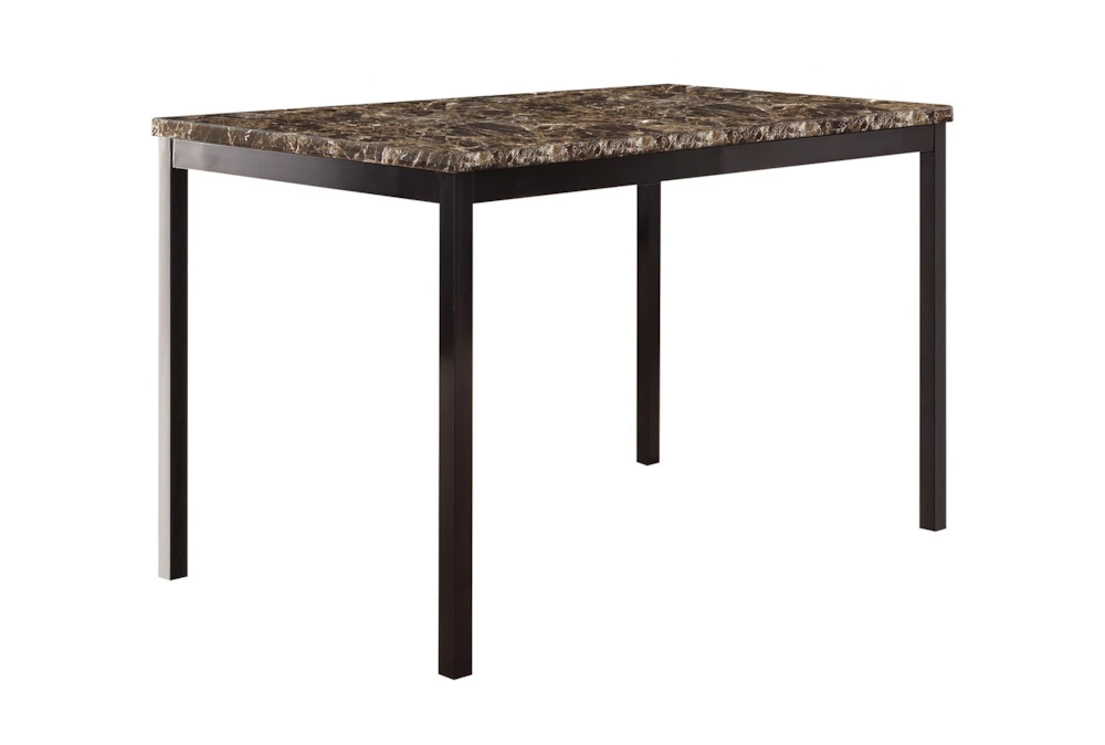 The Bianca Brown Dining Table is a casual addition to any dining room, featuring a 48″ marble top and a 2-tone finish in brown and black. Made with metal and faux leather materials, assembly is required for this furniture piece that also includes wood, engineered wood, fabric, and foam.