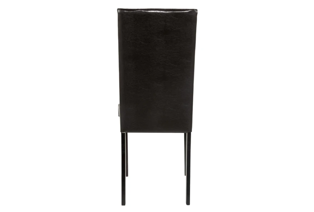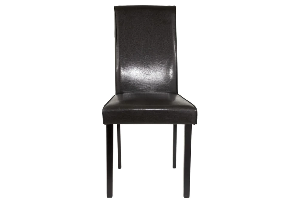 The Braxton Brown Upholstered Side Chair Set of 2 is a casual style dining room set made of fabric and wood with an upholstered back and seat. Assembly is required for this armless set that is designed for small spaces and comes in a brown and black color scheme.