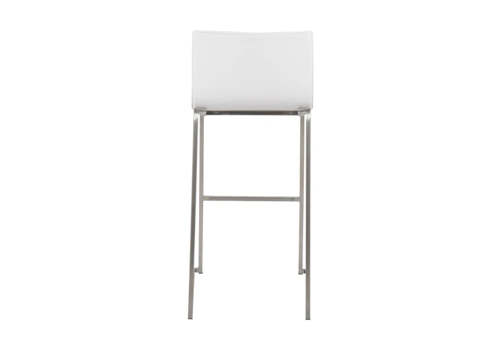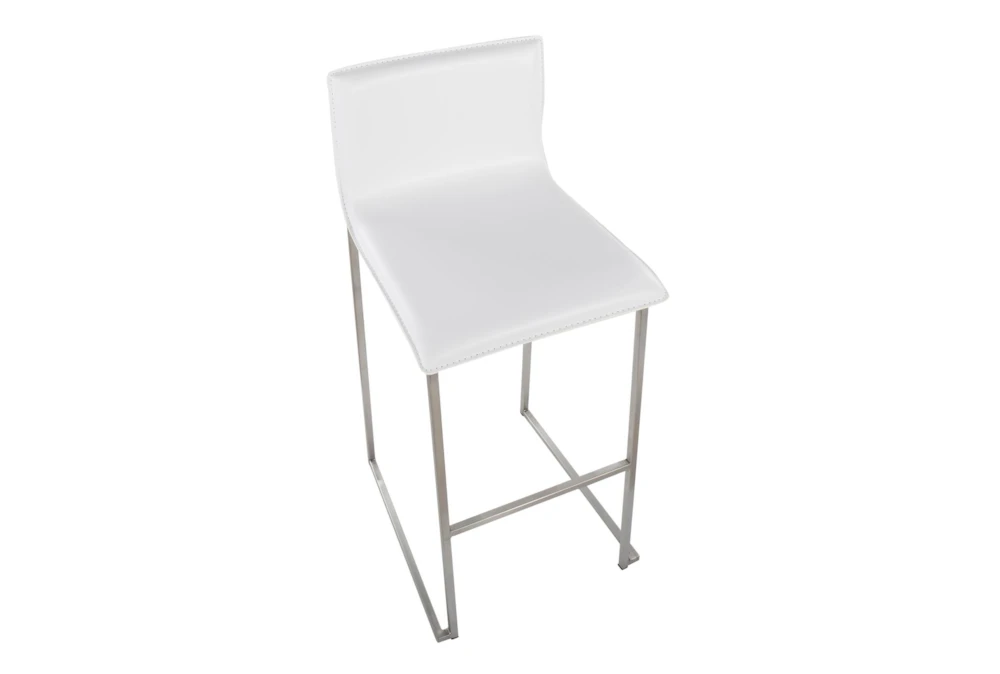 Elevate your dining room with the Cara Stainless Steel and White Faux Leather Bar Stool Set of 2, featuring a modern style and armless design. Crafted with high-quality faux leather and durable stainless steel, this set will add both comfort and sophistication to your space.