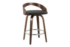 Grey Faux Leather And Chrome Curved Back 30″ Adjustable Swivel Stool