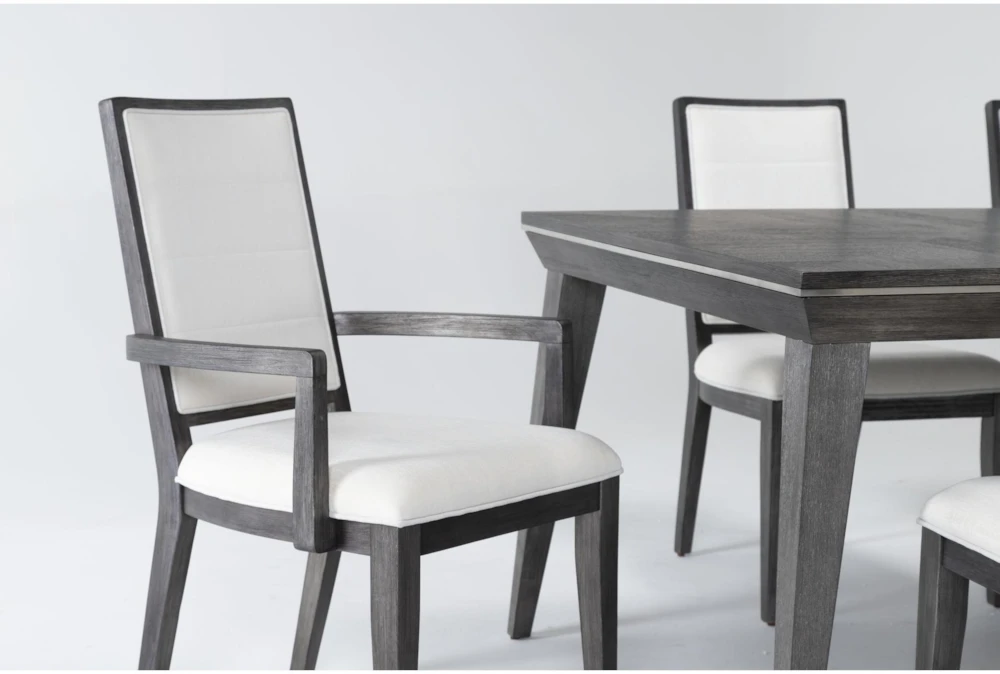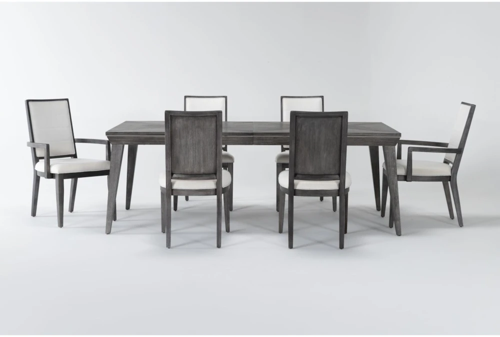 Enjoy a restaurant-worthy experience at home with our rich and refined Echo dining collection. Elements of modern design come together to create pieces that elevate your space with their contemporary characteristics. From the extension table’s splayed legs, to the side and arm chair’s channeled upholstery, to the stainless steel trim, each detail is beautifully sleek and streamlined. The wire-brushed oak veneers lend natural warmth and texture, inspiring a welcoming ambiance.
