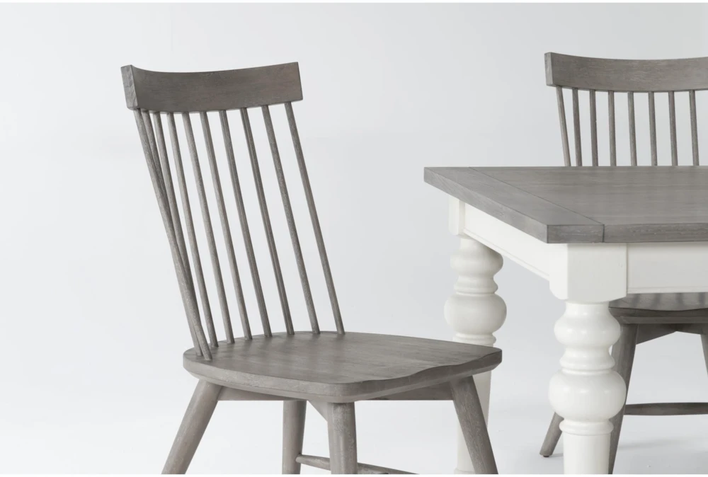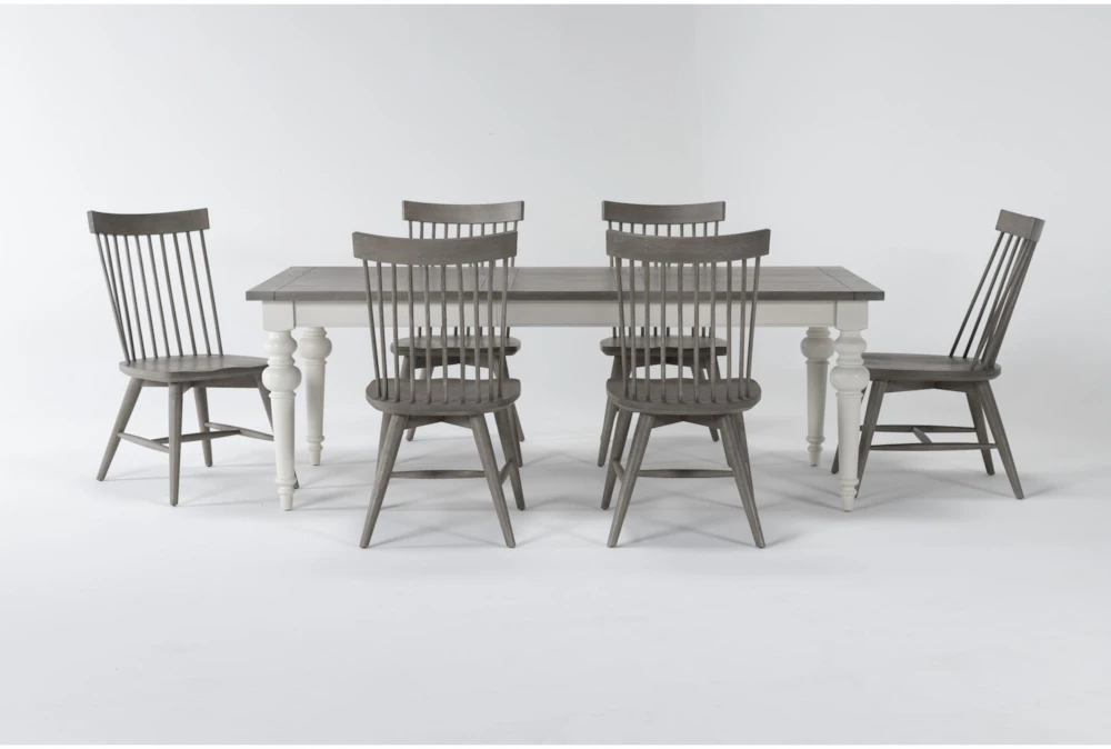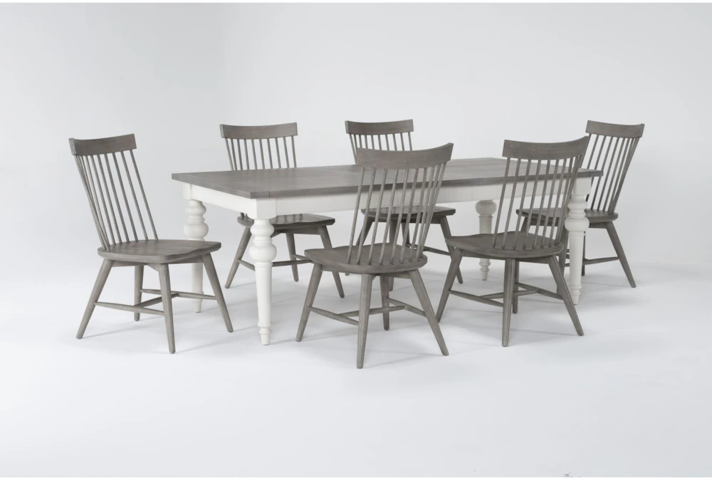 To create a warm, welcoming setting, all you need is our Edward dining collection. Friends and family will want to gather for meals and memories when they see these classic Farmhouse-inspired designs. Crafted with solid hardwood and oak veneer, the set includes a grand two-tone table with graceful turned legs, a coordinating bench and white and grey Windsor-style chairs. You can mix, match and make it yours by coming up with your own custom combination. For storing entertaining essentials, there’s a striking sideboard that houses everything.