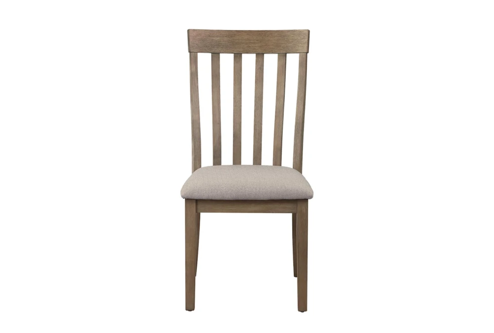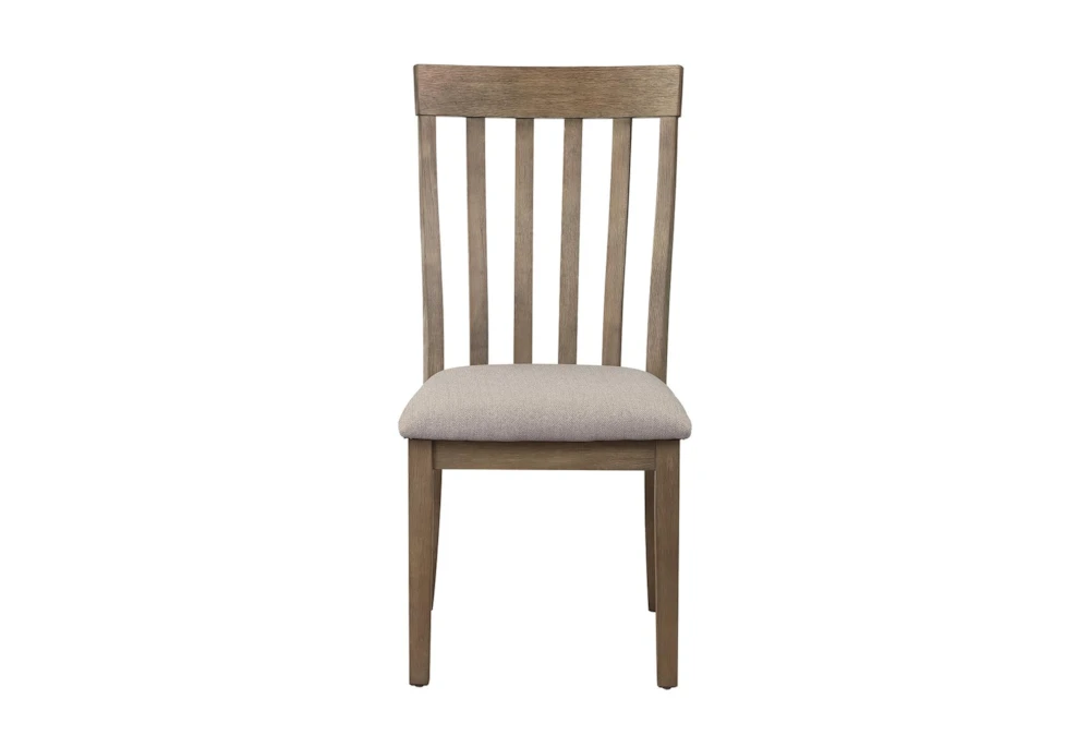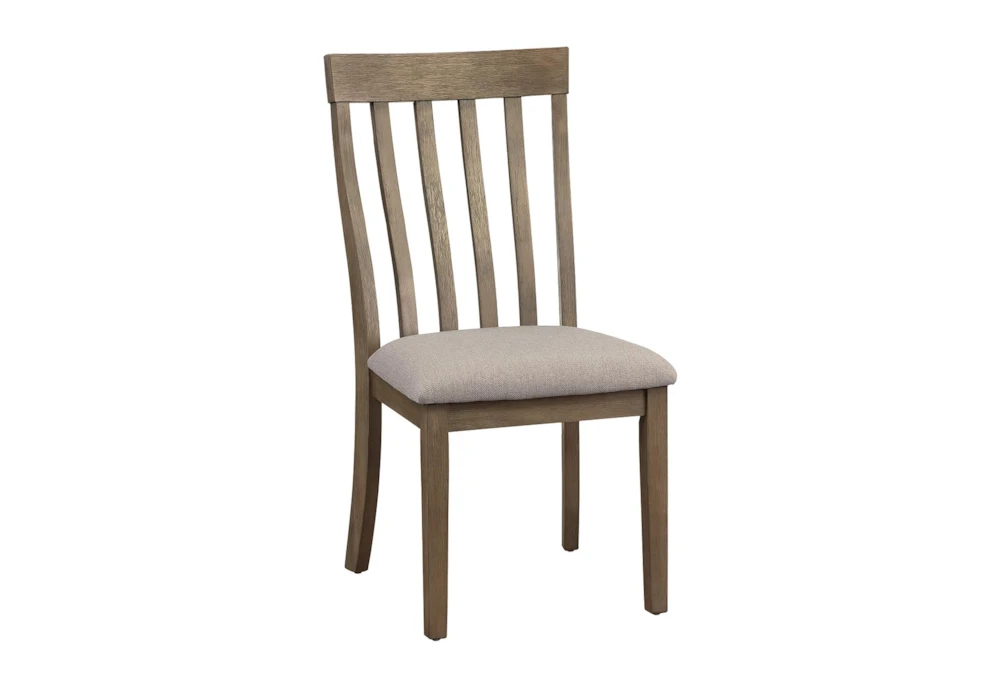 The Gilman Brown Dining Chair Set of 2 is a casual addition to any dining room, made of wire brushed brown wood and fabric foam cushions. Assembly is required for these Asian hardwood chairs with slat backs and seat cushions.