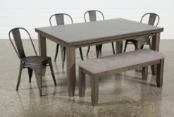 The Jared Dining Set for 4 is a traditional style 5 piece dining set made of wood, with a slat back and armless chairs that come in a rich cappuccino color. Perfect for small spaces, this set includes one dining table and four dining chairs with overall dimensions of 30″ H x 29.5″ W x 47.25″ L and 37.25″ H x 17″ W x 20″ D respectively, and has a weight limit of 300 lbs for both the table and chairs.