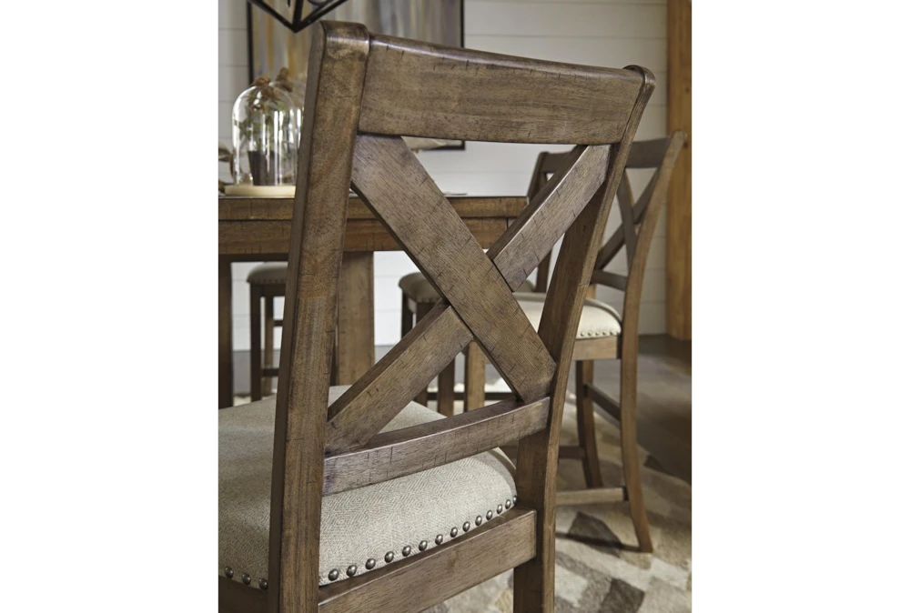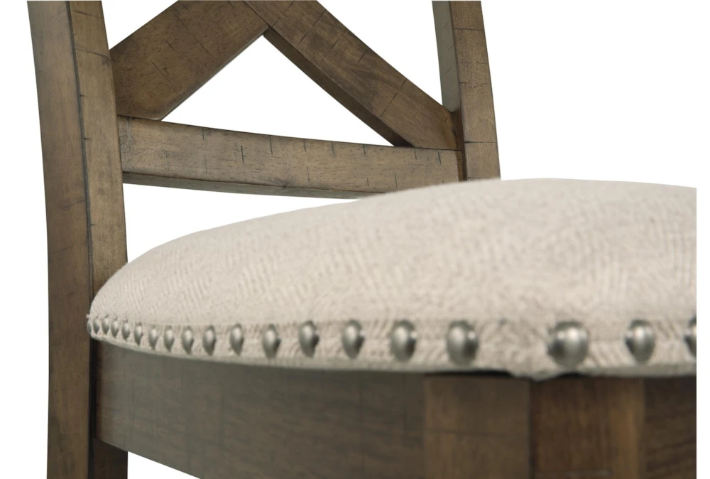 The Kelvin Upholstered 24 Inch Counter Stool Set Of 2 features a nailhead design and is tall, armless, and comes with a back for a comfortable seating experience. Add a casual touch to your dining room with this brown fabric and wood stool set that requires assembly.