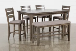 Ashford II 60-78″ Extension Counter With Bench + Stool Set For 6