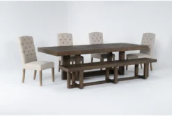 Pierce Espresso 86″ Dining With Bench + Side Chair Set For 6