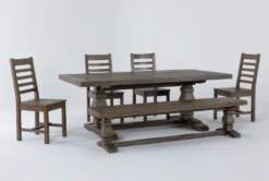 Caden 94″-112″ Rectangle Extension Dining With Biltmore Chairs & Bench Set For 6