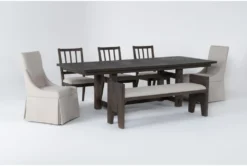 Jaxon Grey 76-96″ Extension Dining With Bench + Upholstered Chair Set For 6