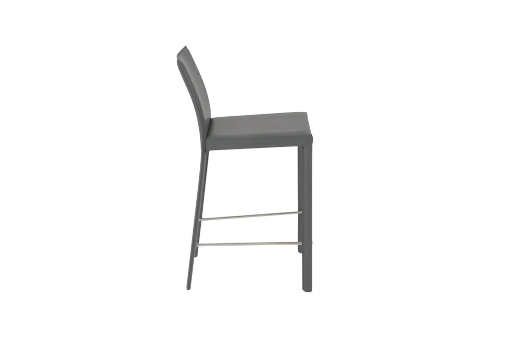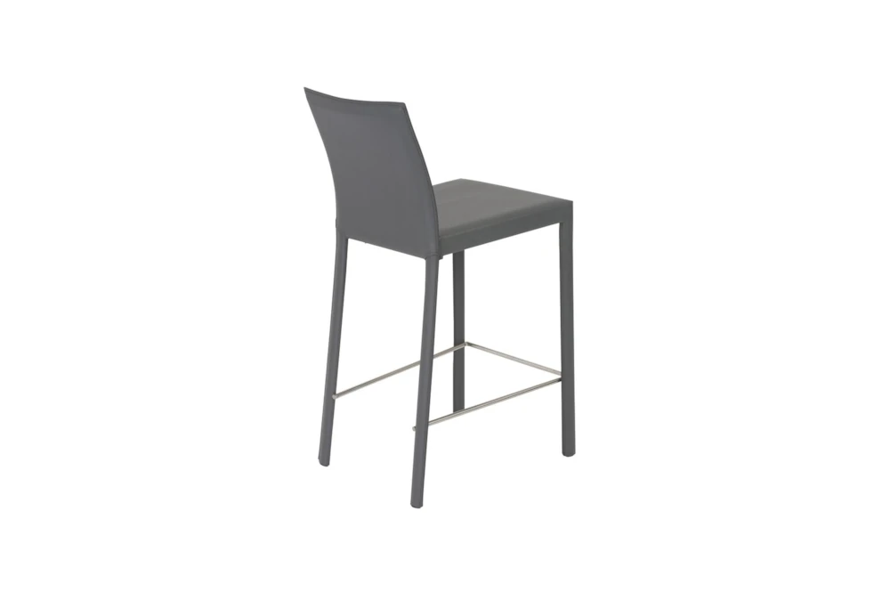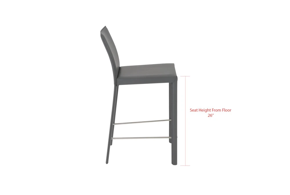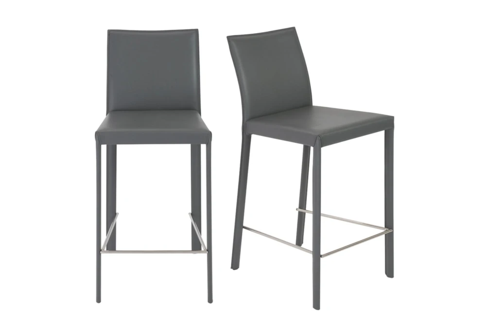 The Parson Grey Faux Leather Upholstered 26 Inch Counterstool comes in a set of two and features a contemporary style with tall backs and comfortable cushions. Made of regenerated leather, this gray stool requires assembly.