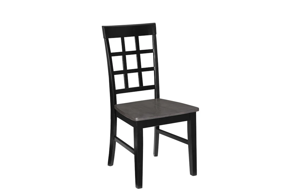 The Salem Window Pane Dining Chair comes in a set of 2 with a black finish and is made of wood, perfect for any casual dining room setting. Assembly is required and the chairs are designed to fit in small spaces, made with rubberwood solids and a gray/black color scheme.