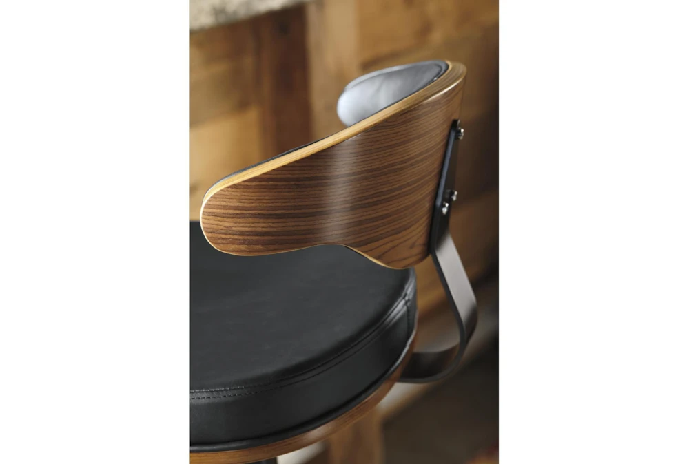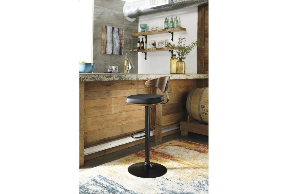 Bring a touch of modern elegance to your dining room with the Skyline Brown Adjustable Swivel Bar Stool, featuring a comfortable back and multi-media construction. This stylish piece is the perfect addition to any contemporary home, providing both comfort and style in equal measure.