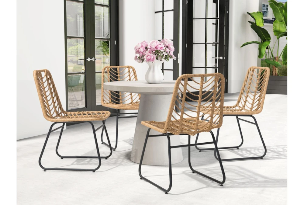 The Trask Natural Dining Side Chair Set of 2 is a rustic styled dining room chair made of polyurethane with metal accents. Assembly is required for these chairs that measure 19.7″ W x 24.8″ D x 33.9″ H and feature a powder coated aluminum frame.