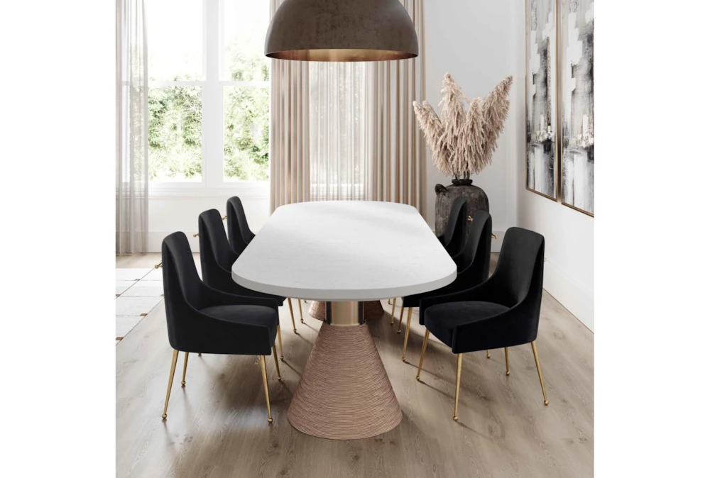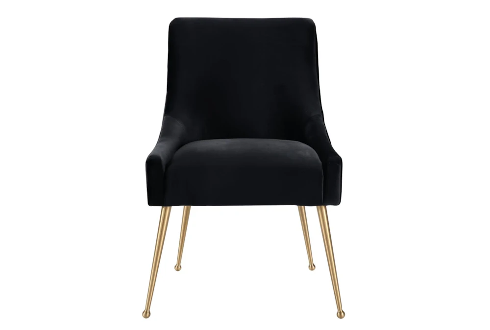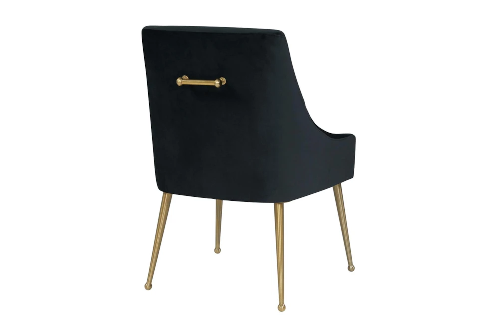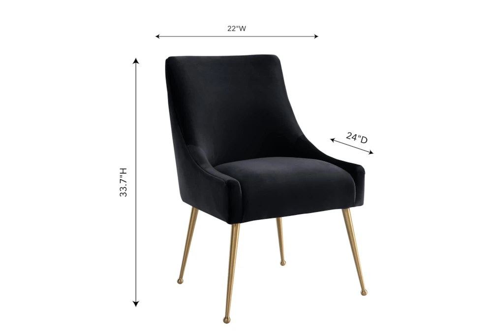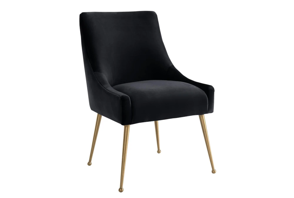 The Trix Black Velvet Dining Chair boasts a modern style with durable yet sumptuous velvet upholstery and fab gold stainless steel legs. Handmade with an elegantly curved design, this chair is perfect for adding a touch of sophistication to any dining room.