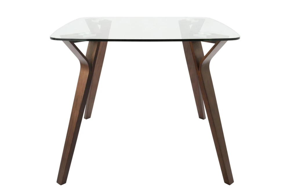 This Vini Walnut and Glass Mid-Century Modern Dining Table is the perfect centerpiece for any elegant dining room. Made with high-quality wood and a sleek glass top, this modern table is both stylish and functional.